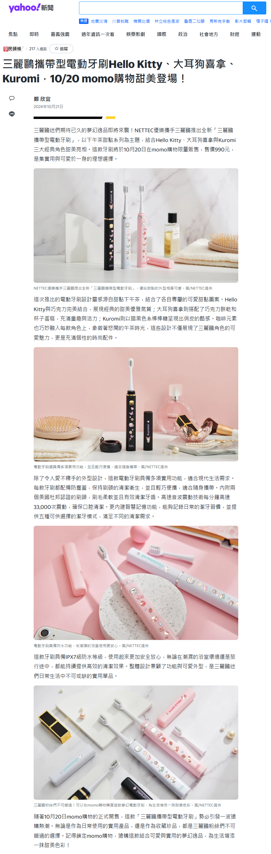 三麗鷗攜帶型電動牙刷甜點系列登場!