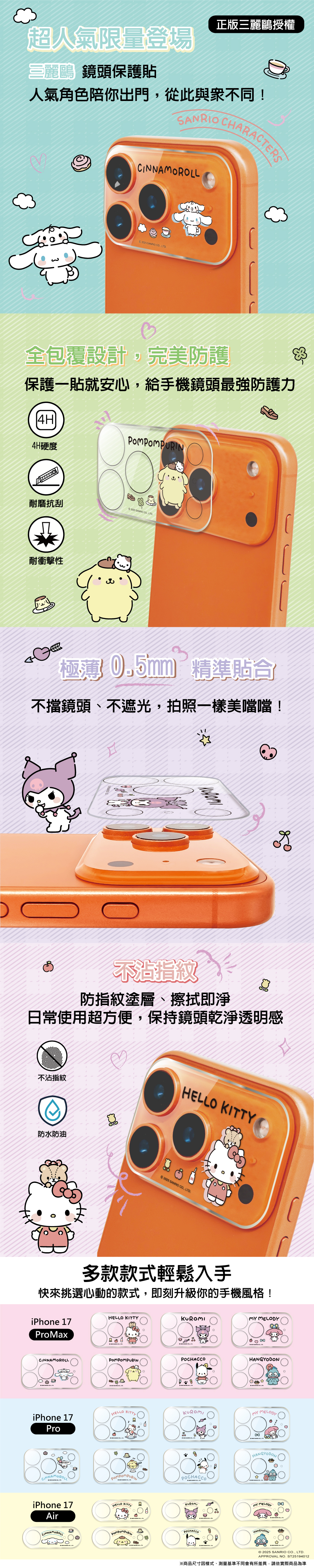 .正版授權三麗鷗家族,17系列鏡頭保護貼