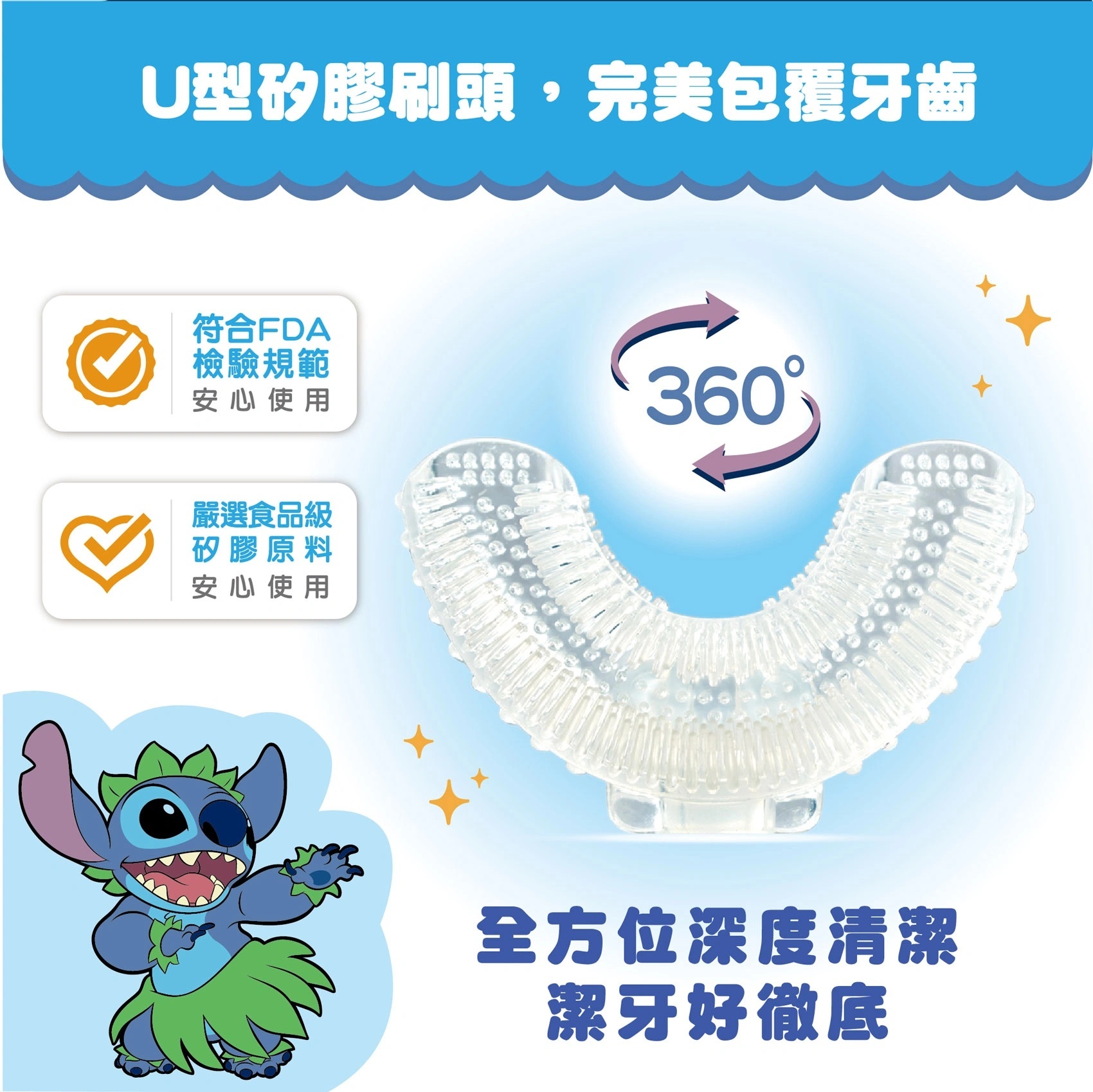 .特殊U型三面刷毛 360°包覆牙齒