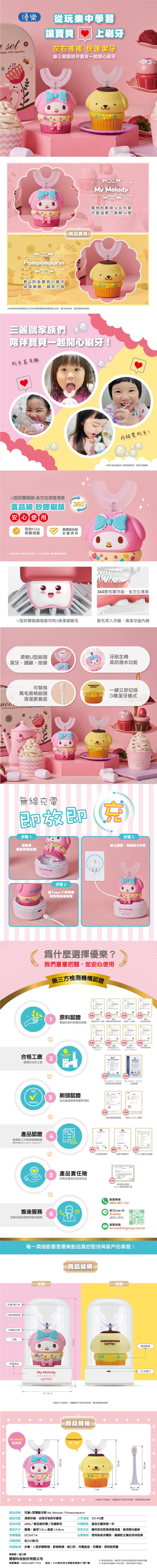 美樂蒂 兒童U型電動牙刷 三麗鷗聯名款
